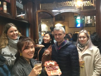 It was time to check out a different barrio in Barcelona. So we took the metro to El Clot. It is one of the oldest parts of the district that has been around since medieval times. The first bar we went to was Bodega Sopena, where we tried Vermut and the friendly bartender prepared plates with cheese, ham, chorizo, lomo, and fuet. After this, we went to another bar where they had paella pans for chairs and toilet rolls on the table to clean your hands. Something different for sure.